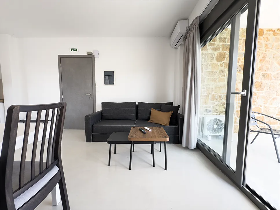 Ο φωτεινός χώρος του σαλονιού διαθέτει καναπέ-κρεβάτι που μετατρέπεται εύκολα για επιπλέον φιλοξενία, ενώ η τηλεόραση επίπεδης οθόνης και το δωρεάν Wi-Fi εξασφαλίζουν στιγμές ψυχαγωγίας και χαλάρωσης. Θέα στο μπαλκόνι.