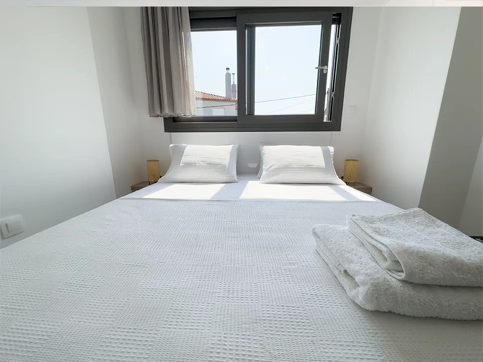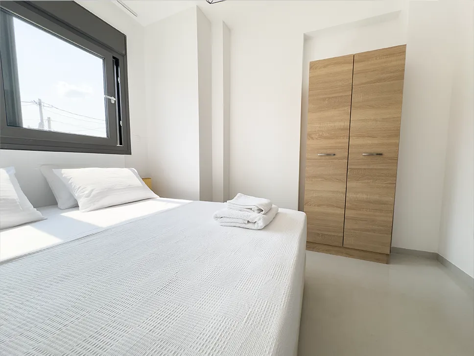 Το υπνοδωμάτιο διαθέτει ευρύχωρο διπλό κρεβάτι με στρώμα Aloe Vera για έναν ξεκούραστο και αναζωογονητικό ύπνο. Η διαρρύθμιση και η προσεγμένη επίπλωση δημιουργούν έναν άνετο και φιλόξενο χώρο. Διαθέτει ευρύχωρες ντουλάπες και έπιπλα εισόδου για πρακτική οργάνωση.
